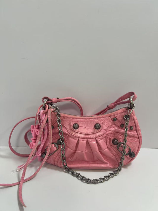 Balenciaga Le Cagole Pink Crocodile-Embossed Leather Shoulder Bag