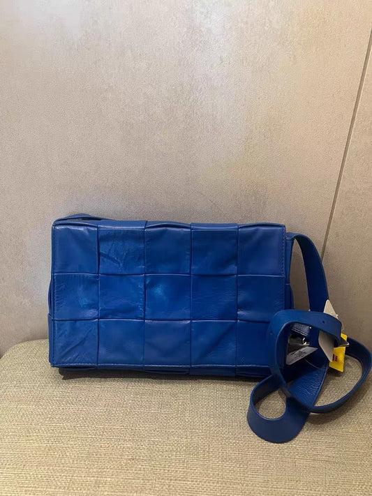 Bottega Veneta Cassette Bright Blue Intrecciato Leather Crossbody Bag