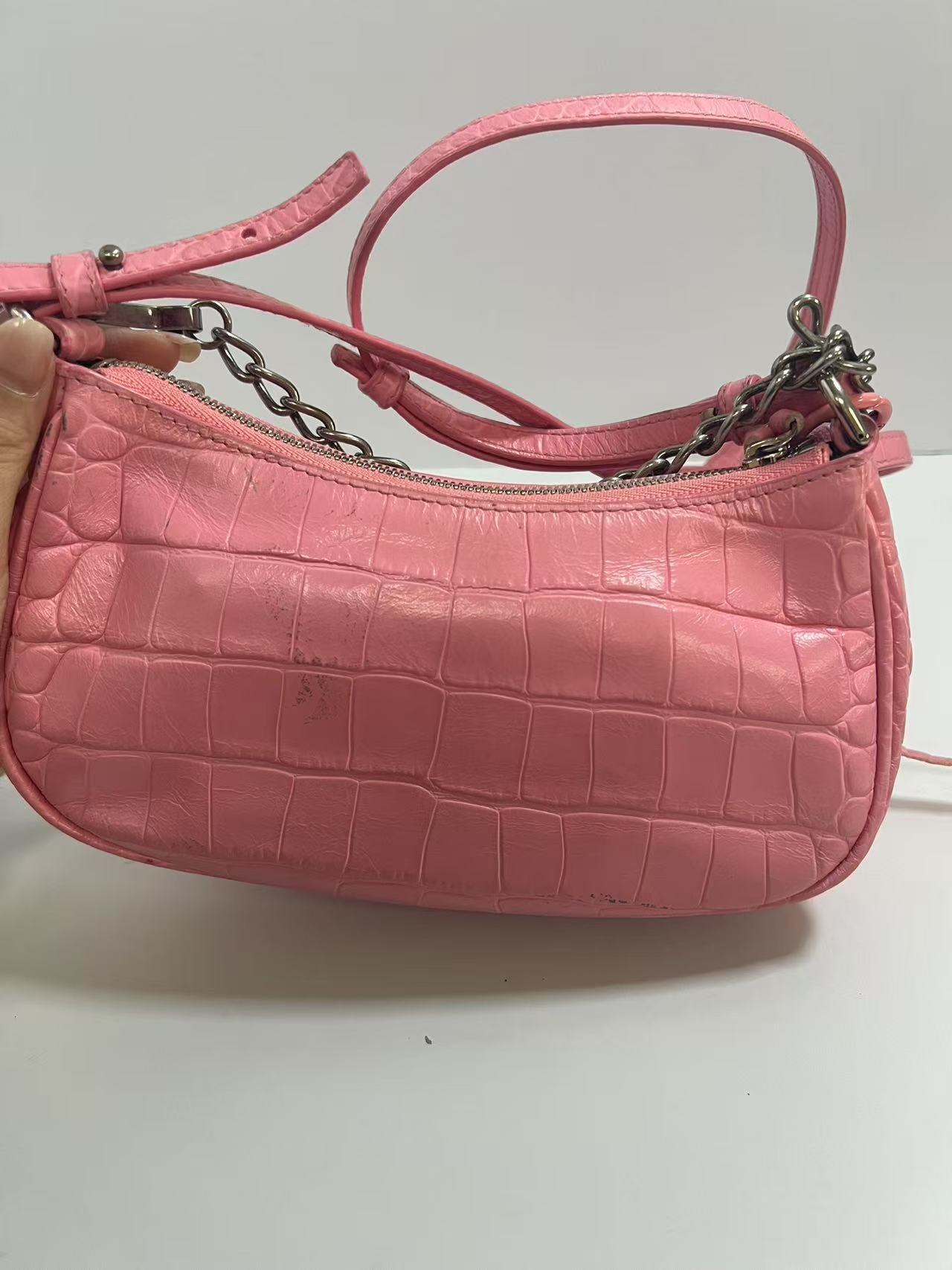 Balenciaga Le Cagole Pink Crocodile-Embossed Leather Shoulder Bag