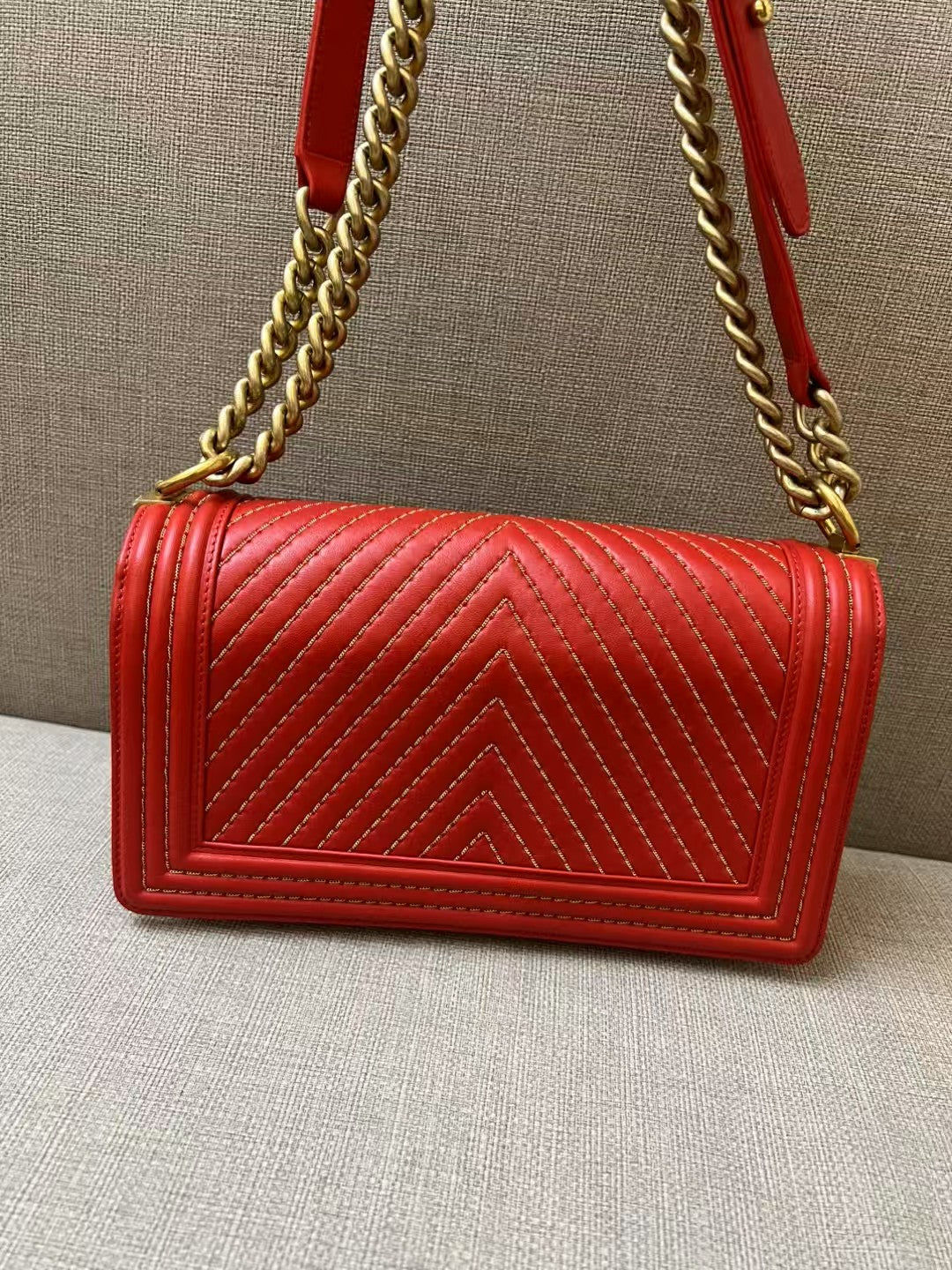 Chanel Boy Medium Red Chevron Quilted Leather Bag