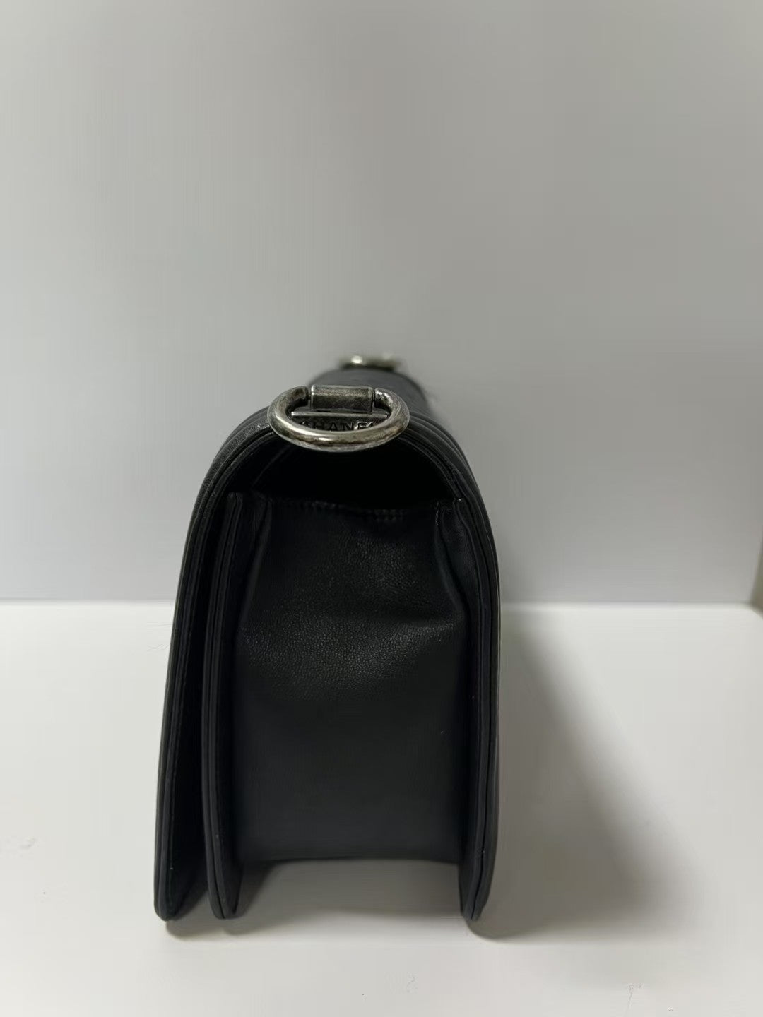 Chanel Boy Medium Black Chevron Calfskin Leather Shoulder Bag