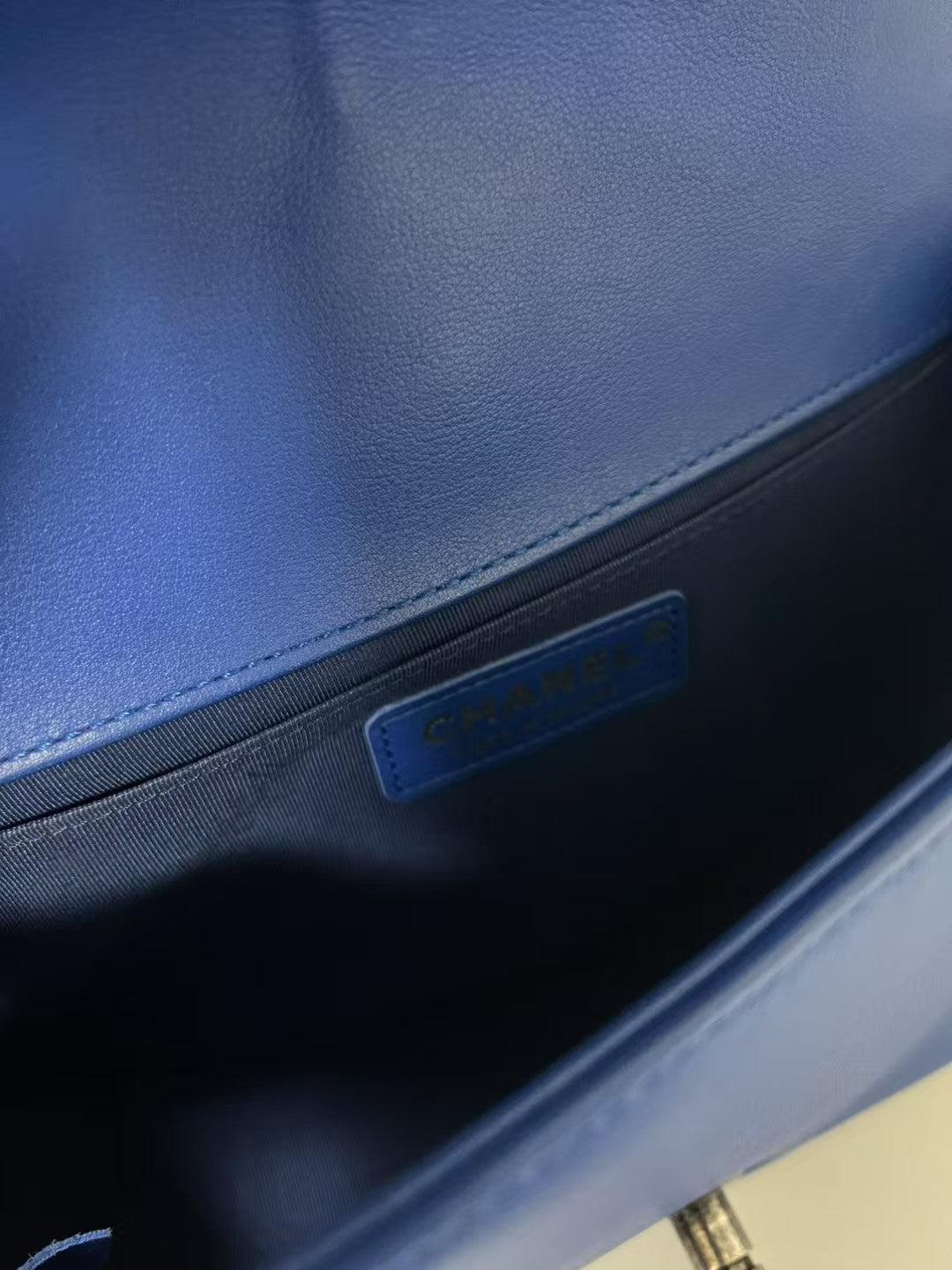 Chanel Boy Medium Royal Blue Chevron Lambskin Leather Shoulder Bag