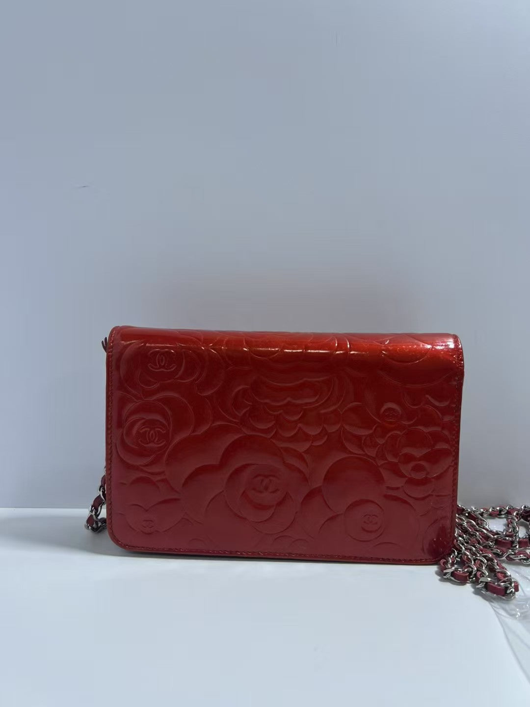 Chanel Camellia Red Patent Leather Wallet on Chain (WOC)