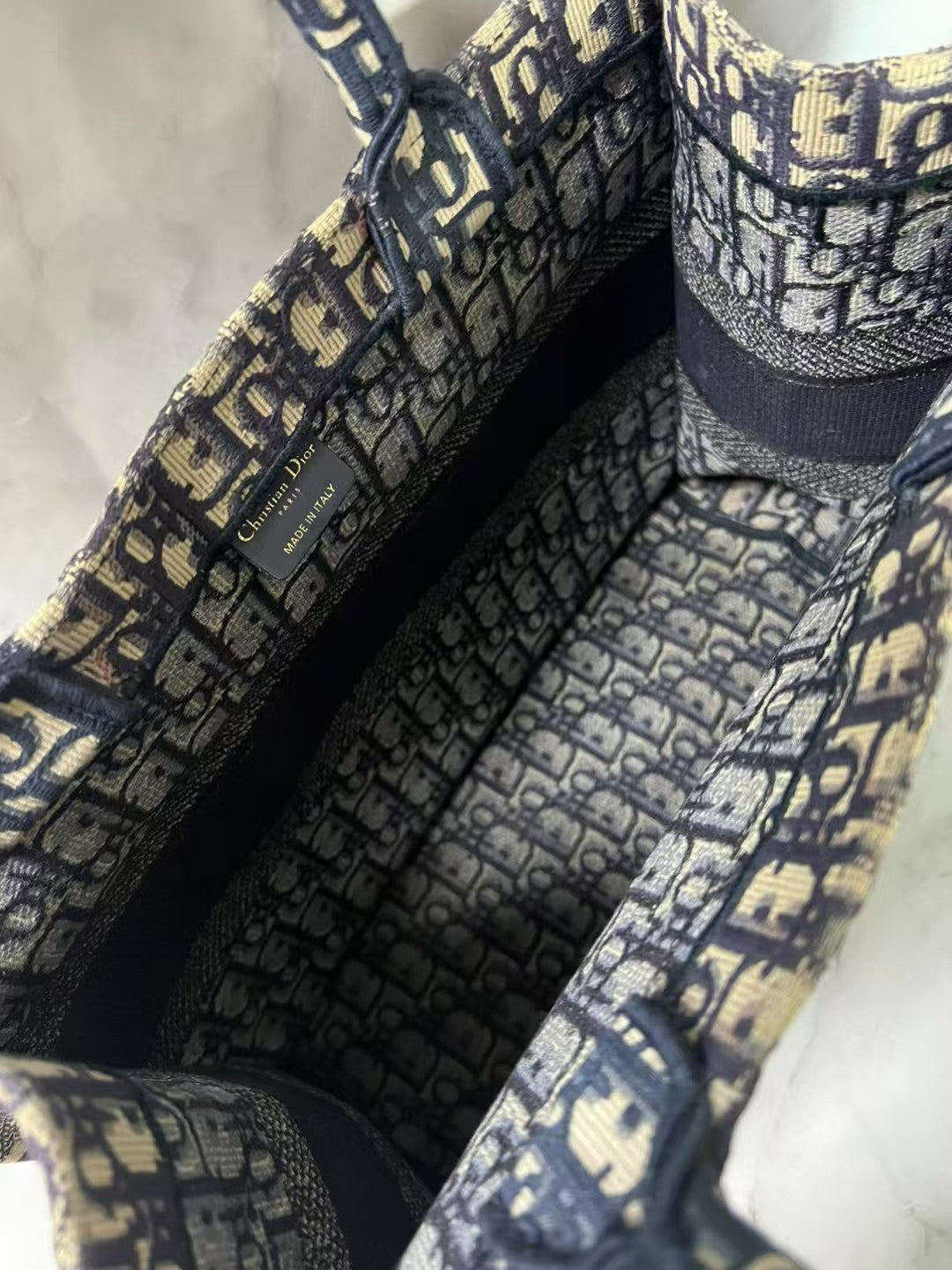 Christian Dior Book Tote Large Beige & Navy Dior Oblique Jacquard Tote Bag